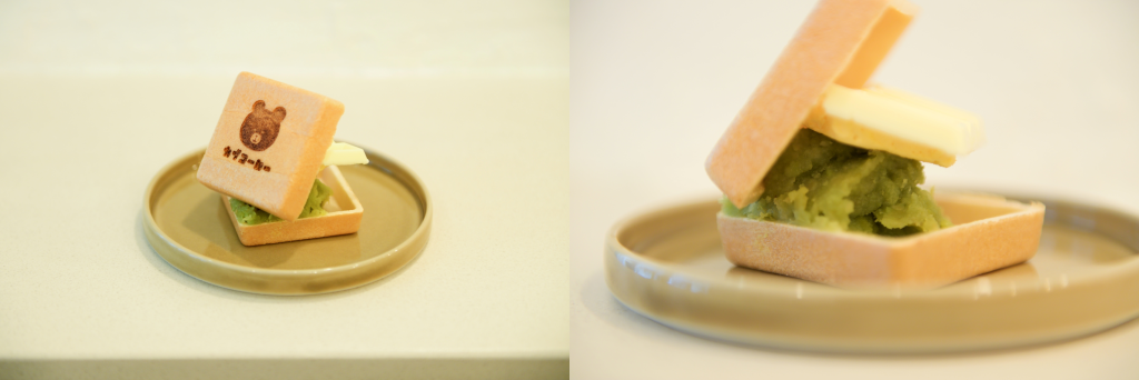 この日は、ずんだあん×塩バタークリーム×ホワイトチョコの組み合わせ。枝豆を丁寧につぶしてつくるずんだあんは香り豊か。ガブッとほおばれば、あまじょっぱい幸福感が口いっぱいに広がります。