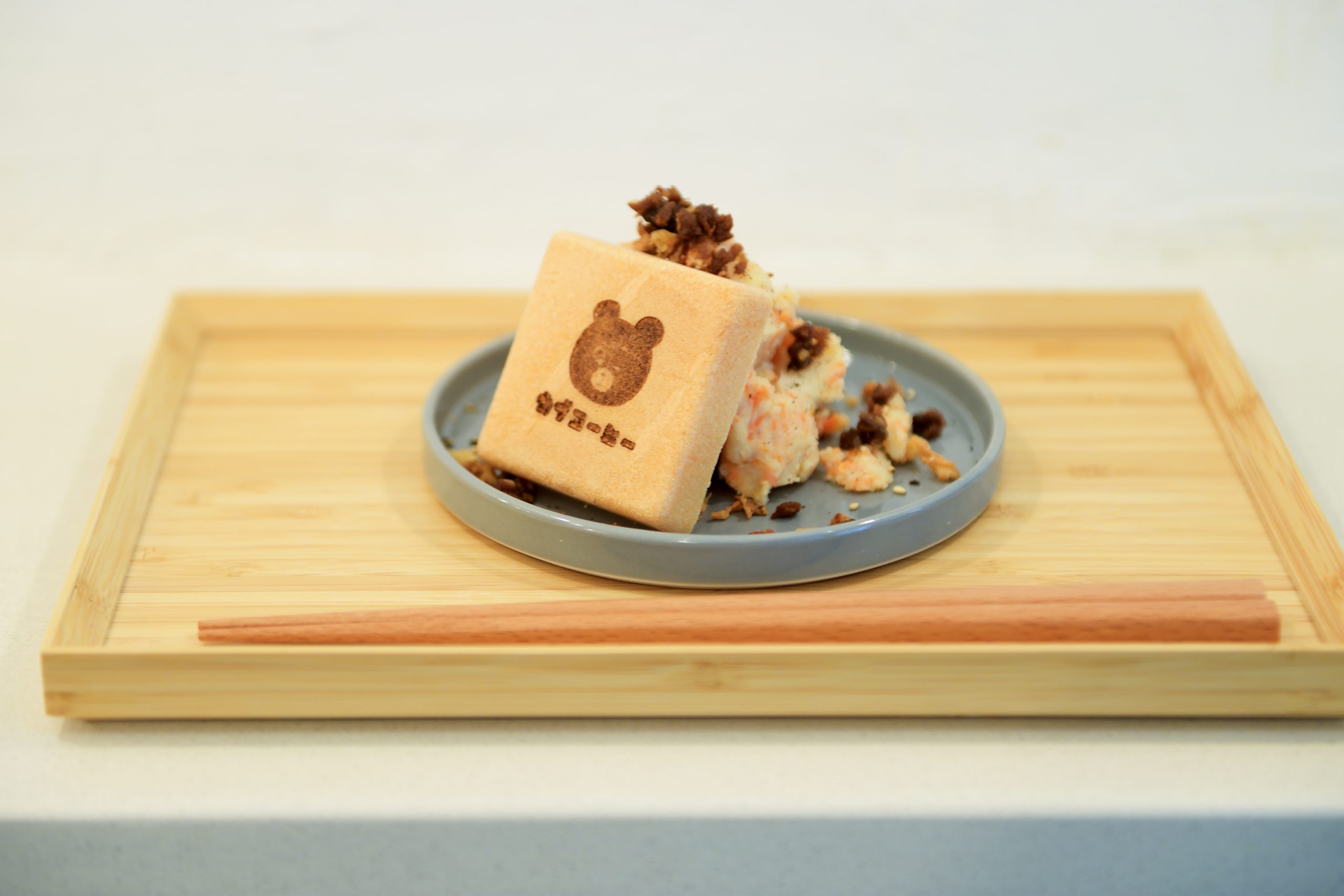 お店のシンボル、子グマのイラストがプリントされたかわいらしいモナカ。中にはその日おすすめの“おいしいやつ”がサンドされています。